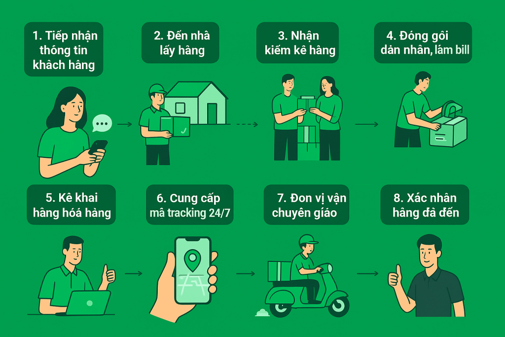Công ty, hotline hỗ trợ nhanh chóng. Nhân viên nhiệt tình, chuyên nghiệp, hỗ trợ từ khâu tiếp nhận – đóng gói – giao nhận.
